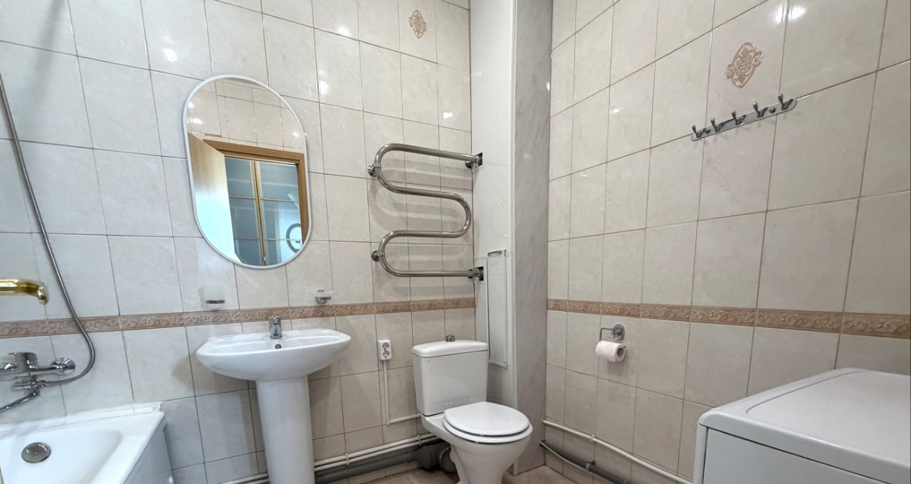 Санузел совмещенный, оснащен всем необходимым. Дом оснащён консьержем, грузовым и пассажирским лифтами. Во дворе есть детская площадка и открытая парковка. Курение разрешено, проживание с детьми можно, но с животными не допускается.