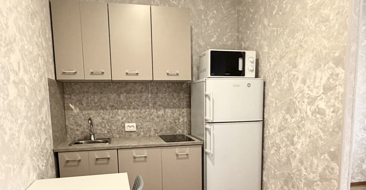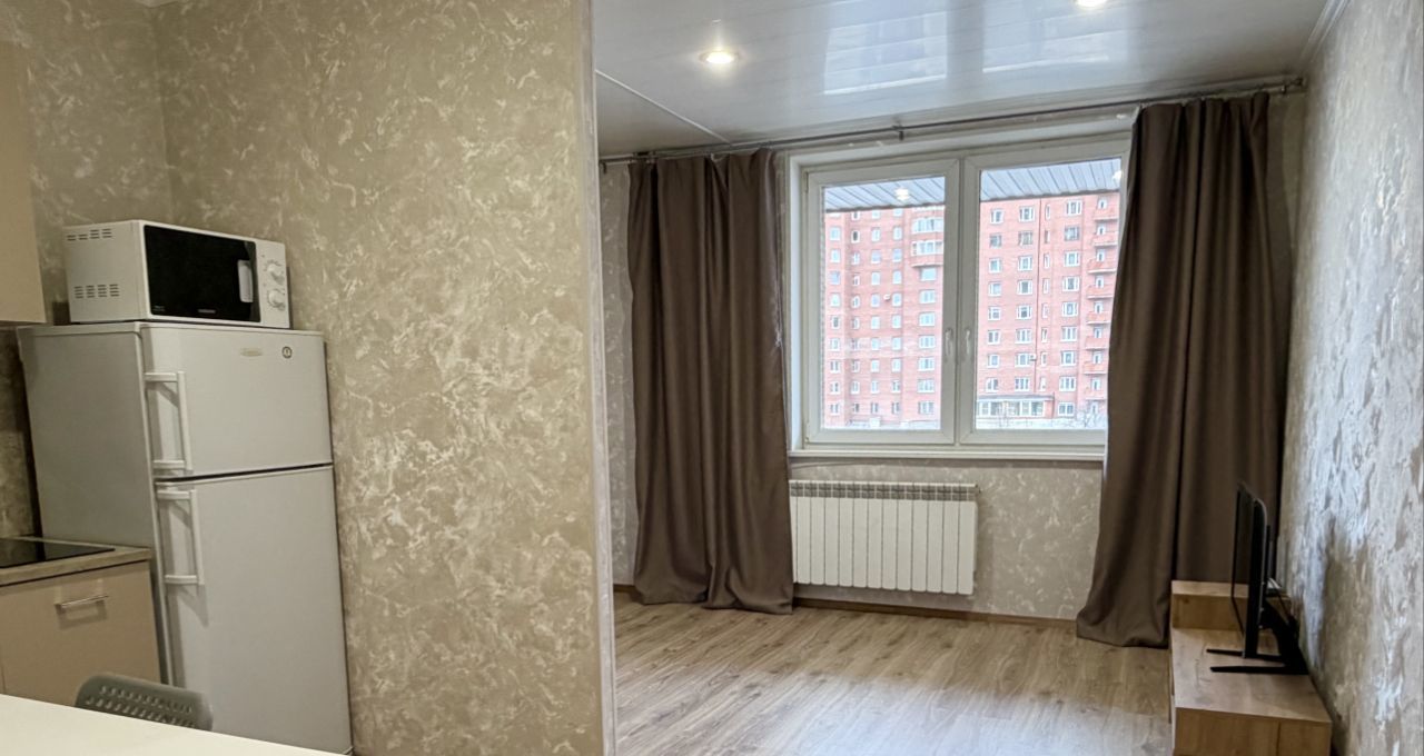 Сдается студия на длительный срок в кирпичном доме 2011 года постройки. Находится на 3 этаже из 24. В квартире выполнен свежий евро ремонт. Просторная кухня оборудована необходимой техникой: холодильник, микроволновая печь и плита. В комнате установлен телевизор и шкафы для хранения вещей.