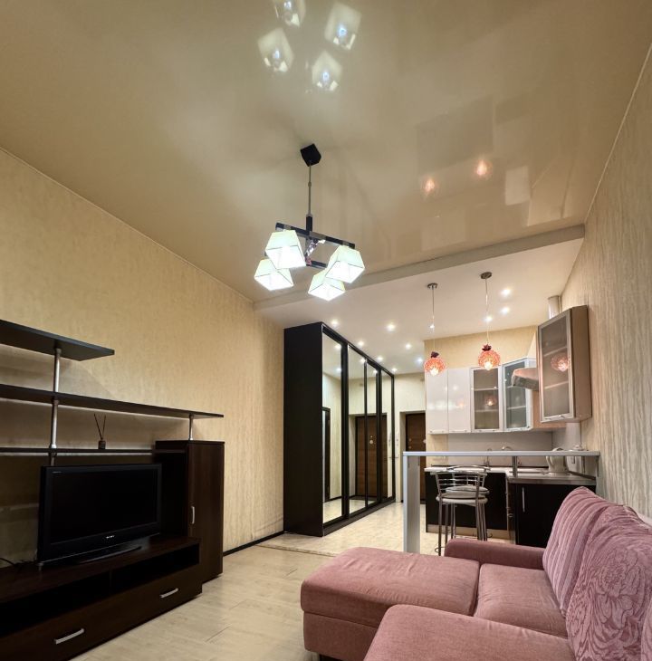 Просторная квaртира-студия с качественным ремонтом и всей необходимой техникой для комфортного проживания.