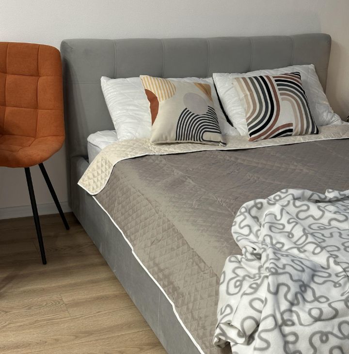Спальная зона оснащена двуспальной кроватью 140х200 с новым ортопедическим матрасом, на котором Вам обеспечен отдых и приятные сны. Для Вашего комфорта установлено удобное кресло и журнальный столик для отдыха и приятного досуга.