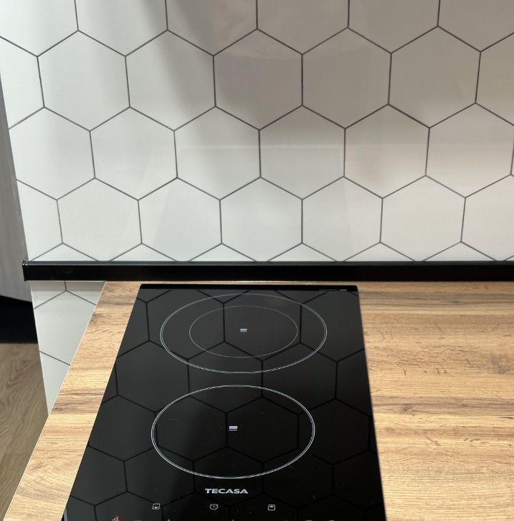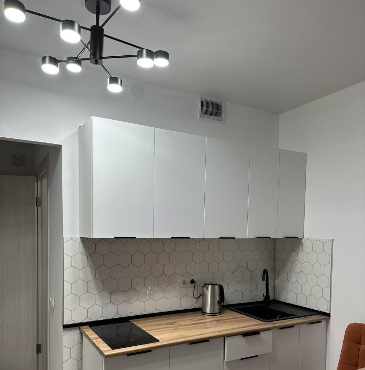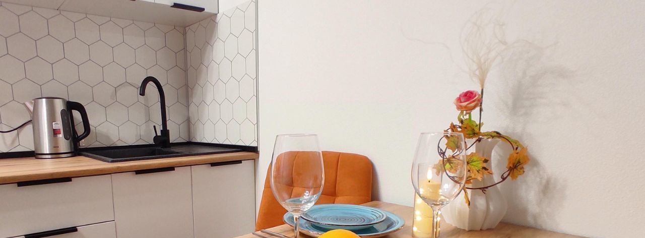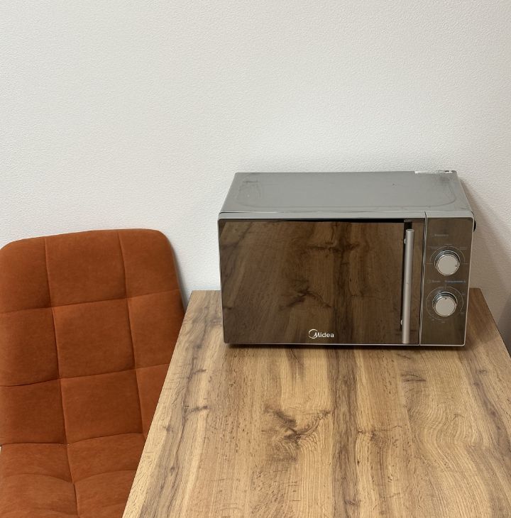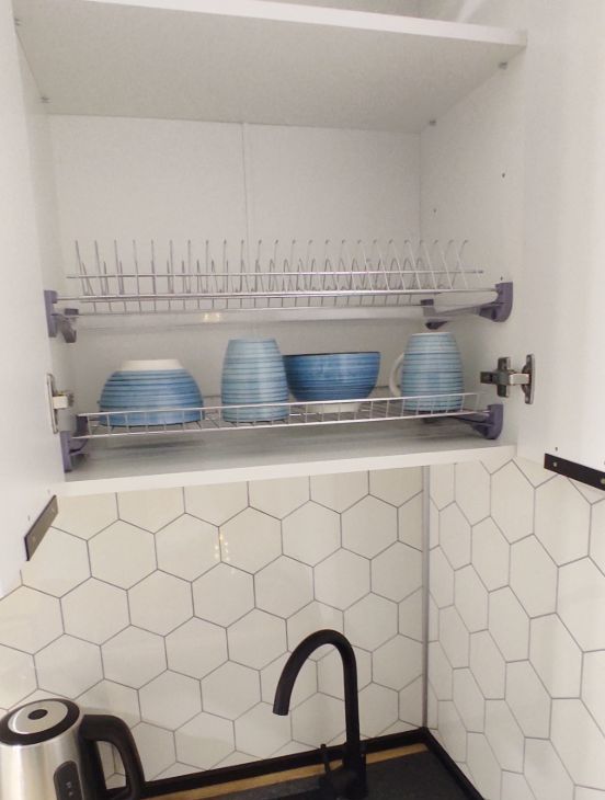 Квартира обустраивалась для себя, продумано всё для комфортного проживания. Большая функциональная кухонная зона с варочной панелью на две конфорки, каменная раковина из мраморной крошки, столешница под дерево, микроволновая печь, электрочайник, керамическая посуда и столовые приборы, а так же кастрюли и сковородка для приготовления любимых блюд. В кухонной зоне размещён большой вместительный холодильник.