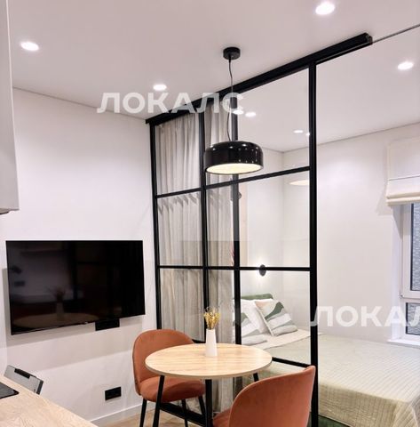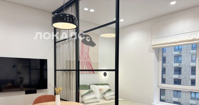 Сдаю в долгосрочную аренду полностью оборудованную для жизни квартиру-студию с зонированием: перегородка отодвигается, штора закрывается в полную ширину всей комнаты.
