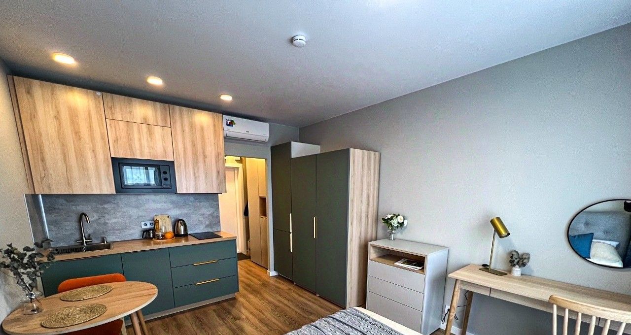 Впервые сдаётся светлая квартира-студия с евроремонтом и совмещённым санузлом в ЖК Витебский Парк, без депозита!