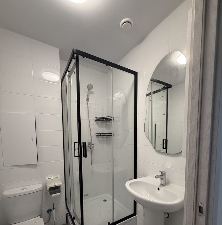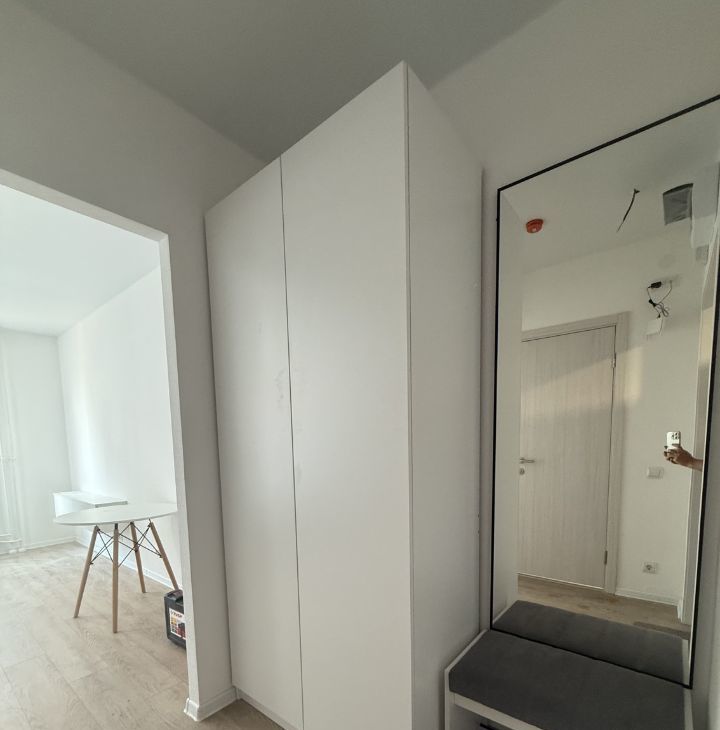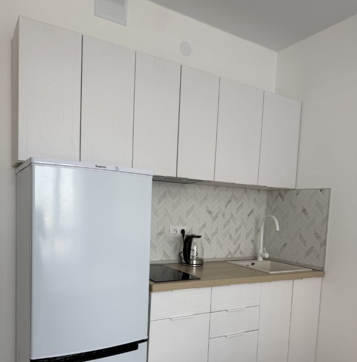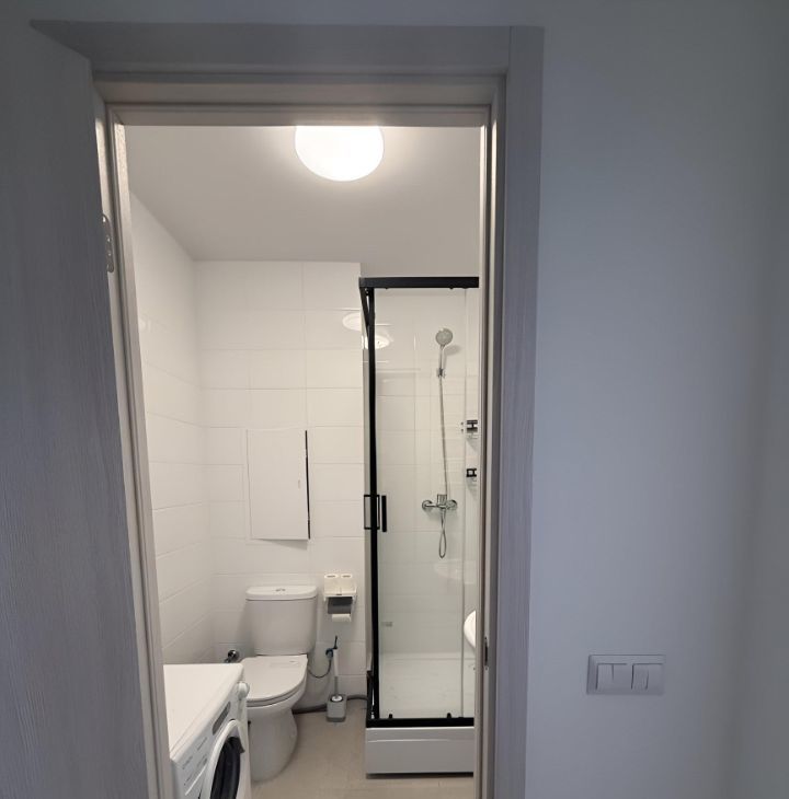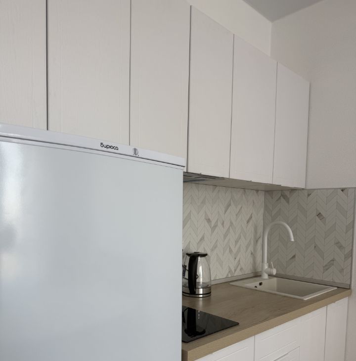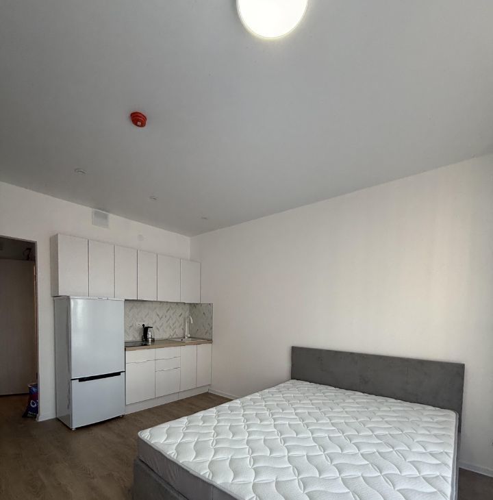 Квартира полностью готова для комфортного проживания. В комнате и на кухне есть вся необходимая мебель. Встроенная техника включает холодильник, телевизор и стиральную машину. Ванная комната оснащена душевой кабиной. Студия выполнена в современном стиле с использованием качественных материалов, поэтому вам будет приятно вернуться сюда после рабочего дня.