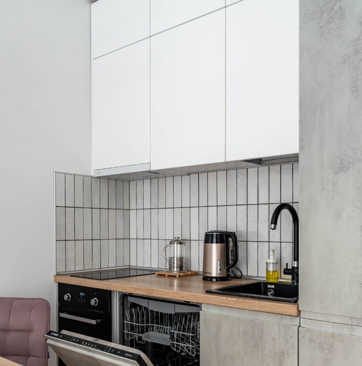 В квартире есть - двуспальная кровать 140 см, смарт ТВ, кухня - варочная панель, духовка, посудомоечная машина, полноразмерный холодильник, вся необходимая посуда, просторный вместительный шкаф, санузел с душем, стиральная машина, утюг, гладильная доска. В доме лифт.