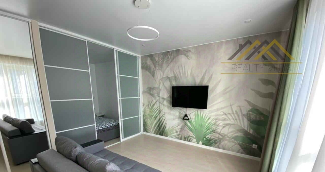 • Планировка: кухня-гостиная с диваном и ТВ + отдельная спальная зона