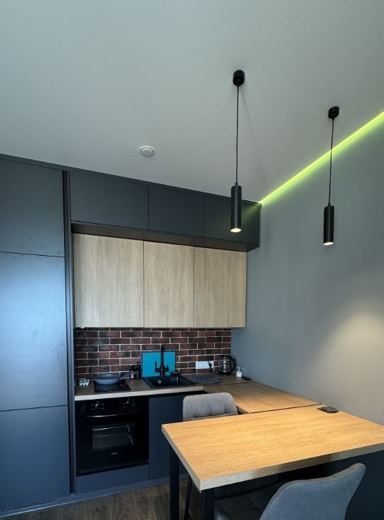 В квартире сделан дизайнерский ремонт с качественной техникой и мебелью, ванная отделана керамогранитом, кухня была сделана на заказ по проекту IKEA. В ванной качественные немецкие смесители.