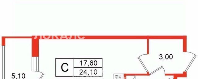 - Квартира-студия общей площадью 24,1 м2, комната 17,6 м2 с выходом на застекленную лоджию.