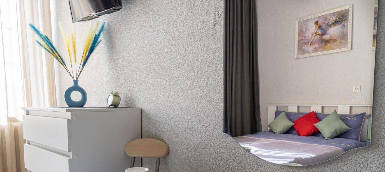 В студии полный уют и комфорт: своя мини-кухня,свой санузел,шикарная двуспальная кровать с ортопедическим матрасом.Бытовая техника и посуда в наличии,тв,стиральная машинка,гладильная доска с утюгом.Студия полностью укомплектована!