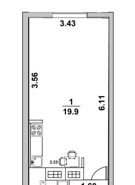 Студия Санкт-Петербург Моравский пер., 3к2 (26.0 м²)
