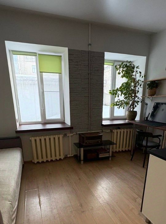 Сдаётся уютная студия на 2 этаже с двумя окнами и видом в тихий зелёный двор.