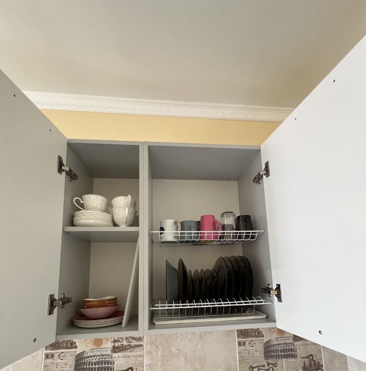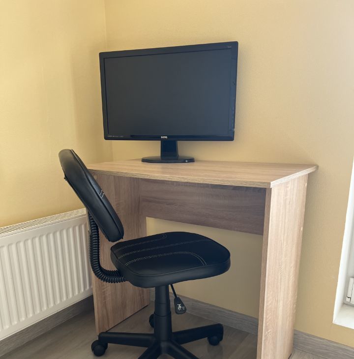 - техника: вытяжка, холодильник, микроволновая печь, варочная поверхность, жарочный шкаф, электрочайник, полный комплект посуды, плазменный телевизор, стиральная машина-автомат, монитор для компьютера, напольный вентилятор, пылесос;