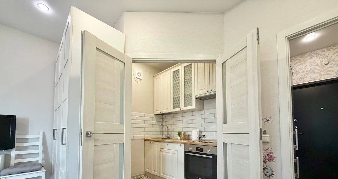 Двери закрыты — перед вами полностью изолированная маленькая кухня-ниша. Готовьте рыбу или стейки — запахи и шум вытяжки останутся за дверью, не проникая в спальную зону.