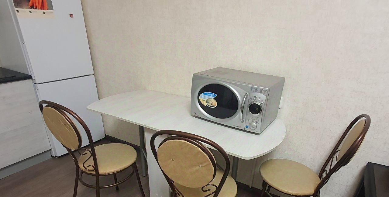В квартире сделан косметический ремонт. Пространство обставлено необходимой мебелью. В наличии вся необходимая техника. Совмещённый санузел оборудован душевой кабиной. Благодаря удобной планировке, в квартире комфортно разместится один человек или пара.