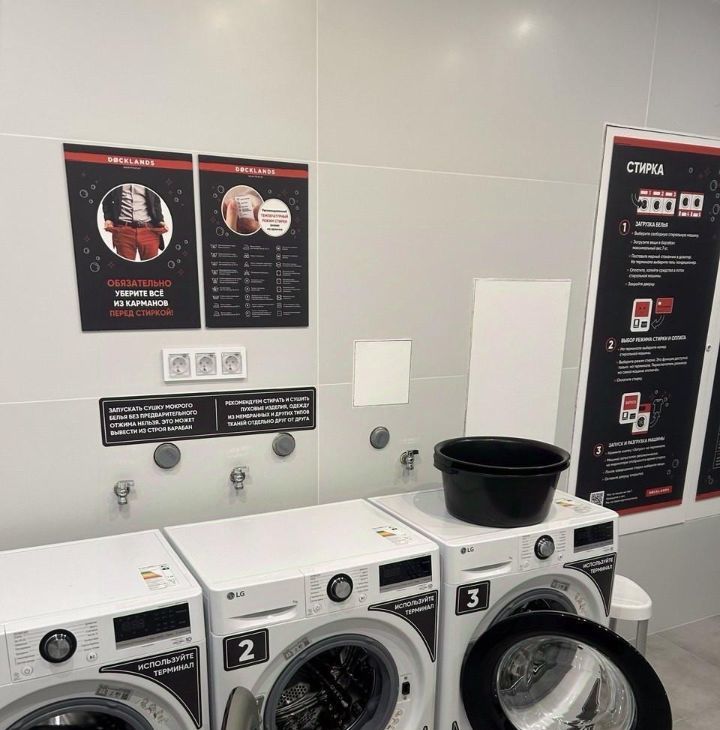 На этаже расположена прачечная самообслуживания со стиральными и сушильными машинами. Круглосуточная охрана и видео наблюдение.