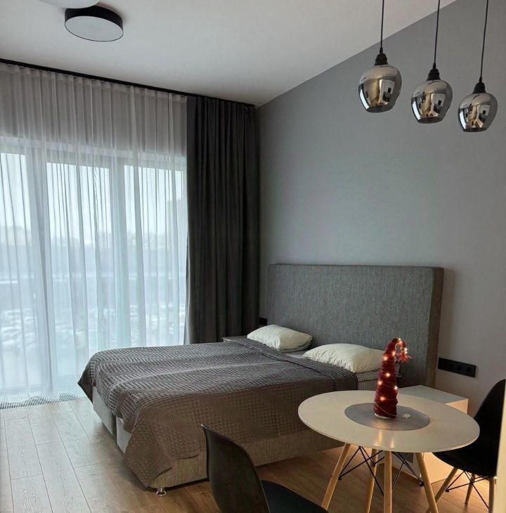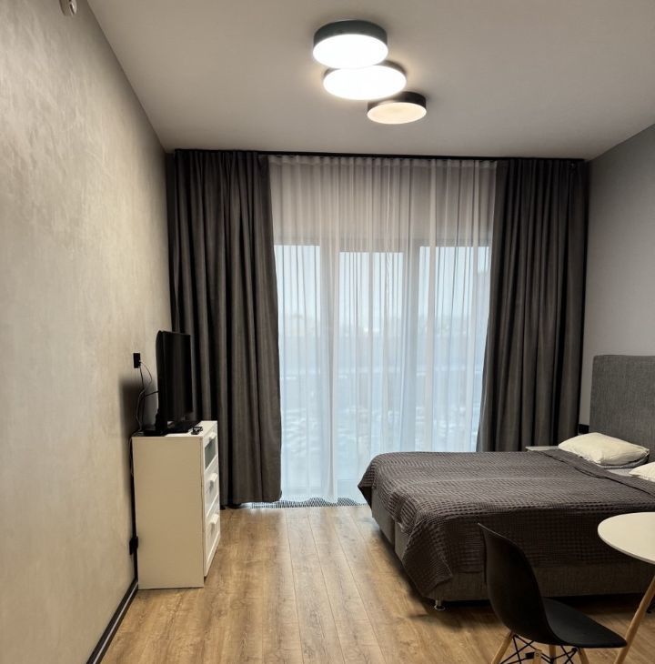 Сдается уютная дизайнерская студия 30 м² в жилом комплексе LOFT Docklands 2. Третий этаж, окна выходят на Ленту — это гарантирует абсолютную тишину в квартире. Никакого шума от трассы, в отличие от квартир с видом на реку.