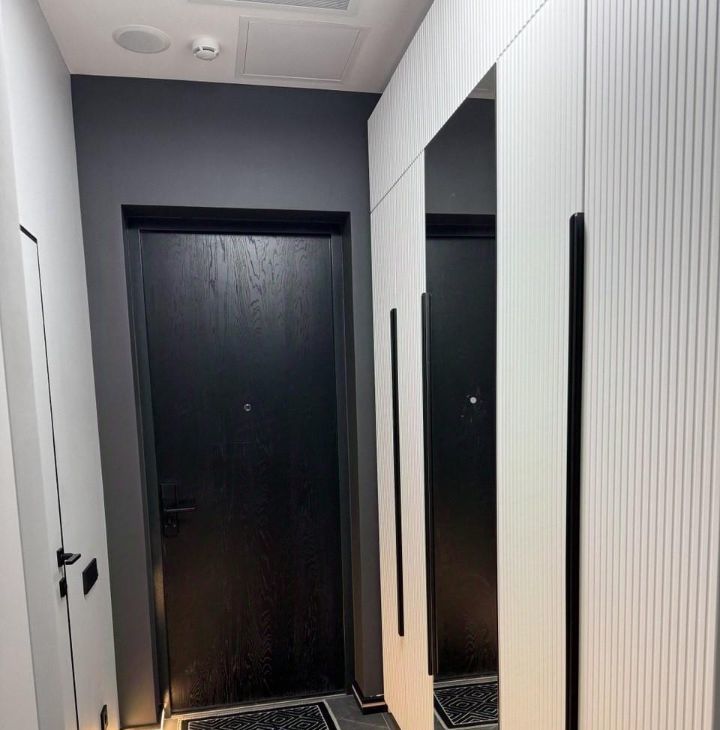 Места для хранения — с запасом. В прихожей установлен глубокий вместительный шкаф, плюс дополнительные системы хранения по всей студии.