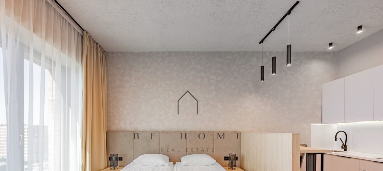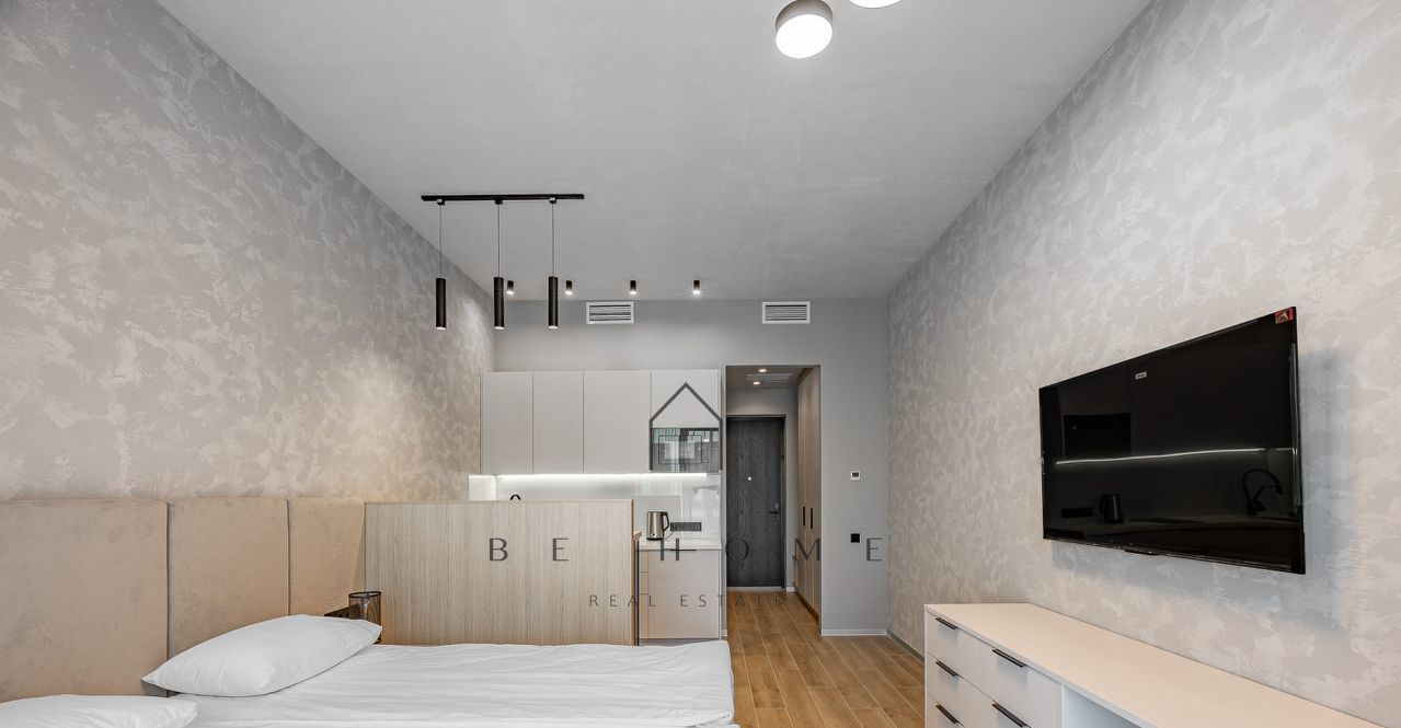 Новая стильная студия с высокими потолками и панорамными окнами в жилом комплексе Docklands 2.