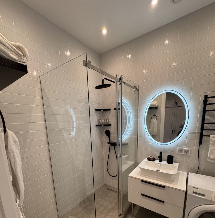 Для детей предусмотрена игровая площадка. Напротив гипермаркет Лента. В пяти минутах езды от апарт-отеля находится Севкабель-порт с творческим пространством, театром, зимним катком и галереей современного искусства "Эрарта". 10 мин до метро Приморская. Рядом находится въезд на ЗСД, до аэропорта 30 мин, до центра города 10-15 мин.