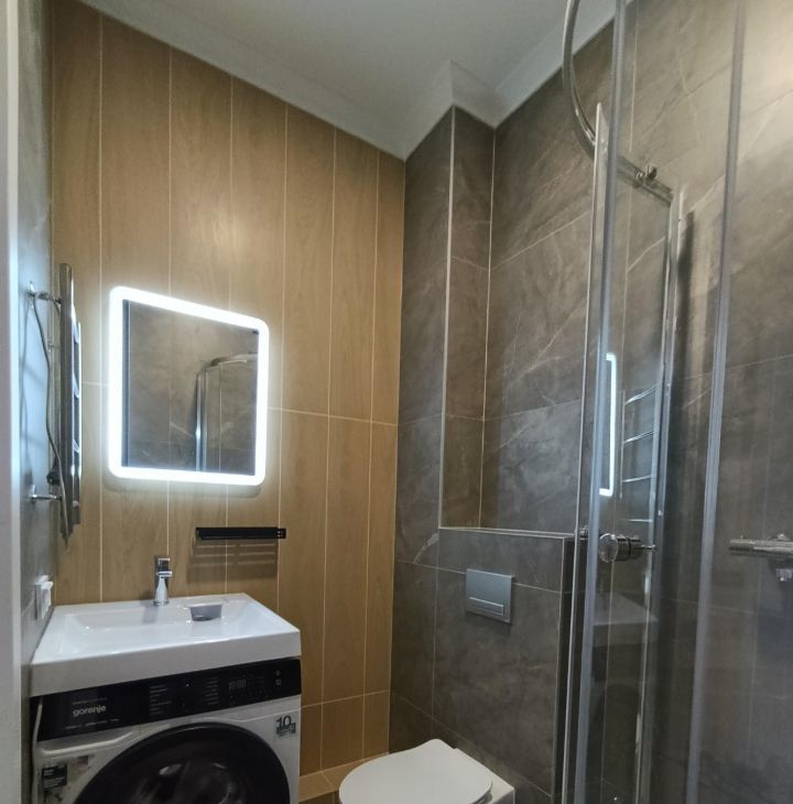 Техника:большой тихий холодильник, посудомоечная машина, духовой шкаф, микроволновка, варочная поверхность, вытяжка, стиральная машинка, роутер.
