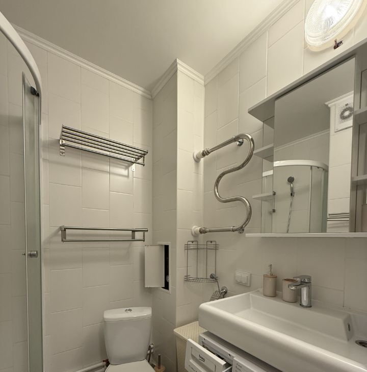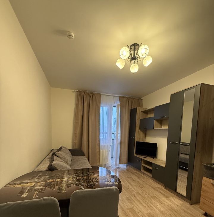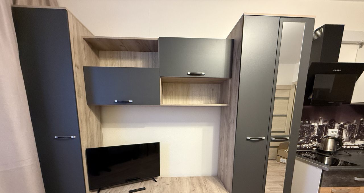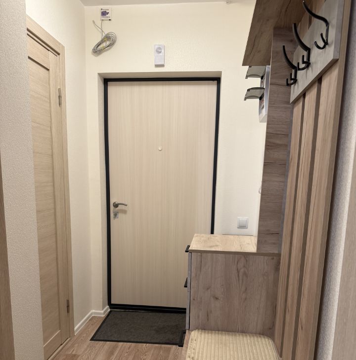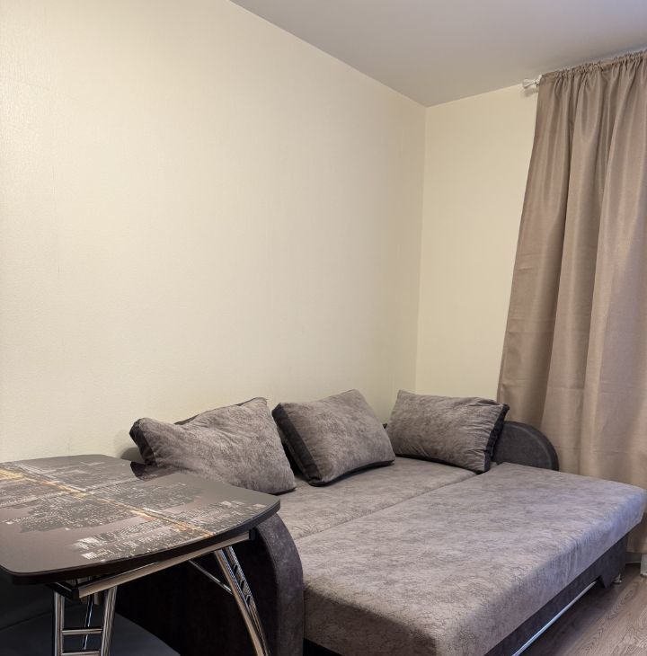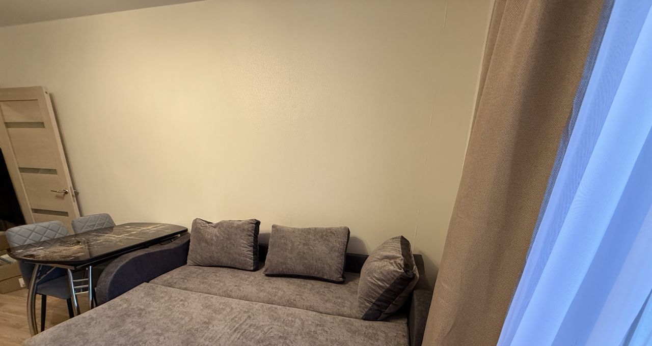 В квартире есть все необходимое: мебель и техника. Оборудованная кухня, столы и стулья, холодильник, микроволновка, стиральная машина, шкаф в прихожей, раскладной диван.