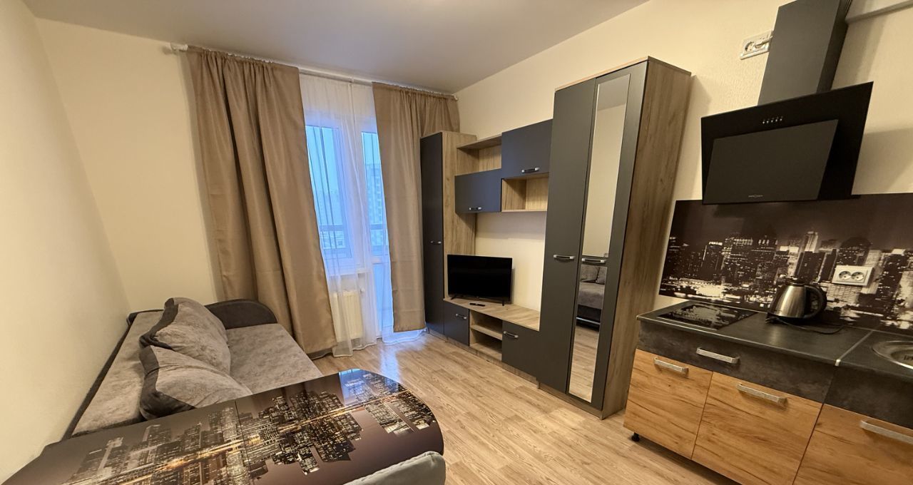 На длительный срок сдается студия в новом доме у парка от собственника.
