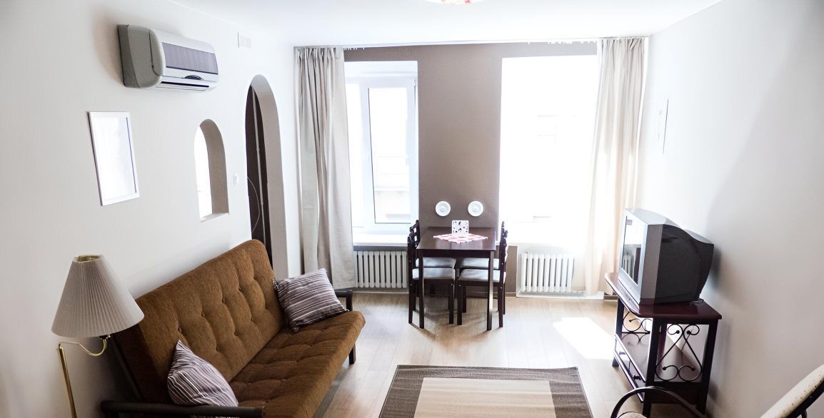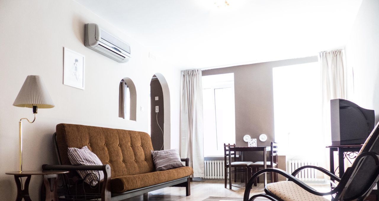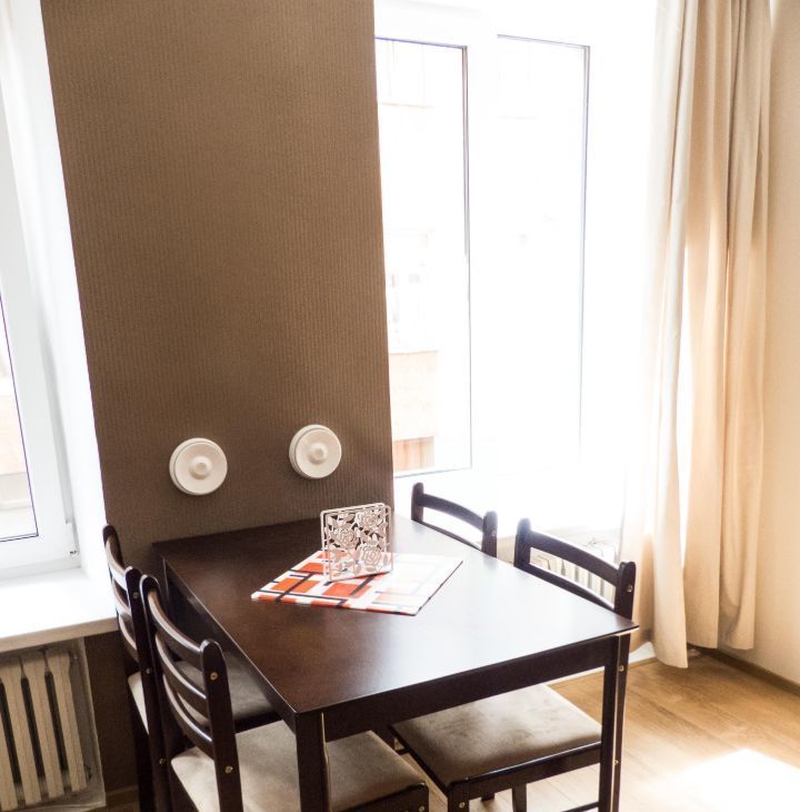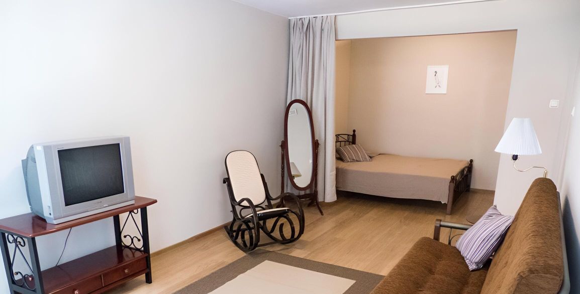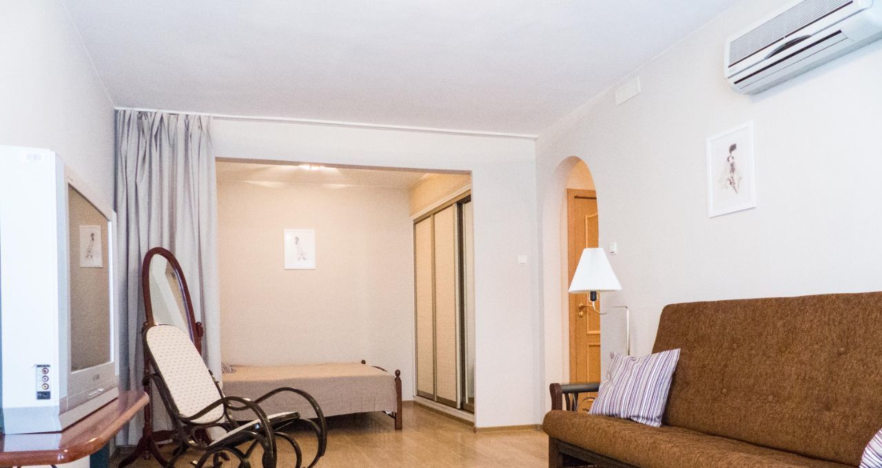 Однокомнатная квартира, 40 кв. метров, окна во двор, комната с альковом, кухня, санузел совмещенный с душевой кабиной. Двуспальная кровать и раскладывающийся диван, кресло-качалка. Имеется вся необходимая мебель и техника для комфортного проживания.