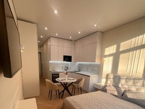 Сдаётся на длительный срок для 1 человека или семейной пары в комплексе комфорт-класса просторная квартира-студия с красивым ремонтом: