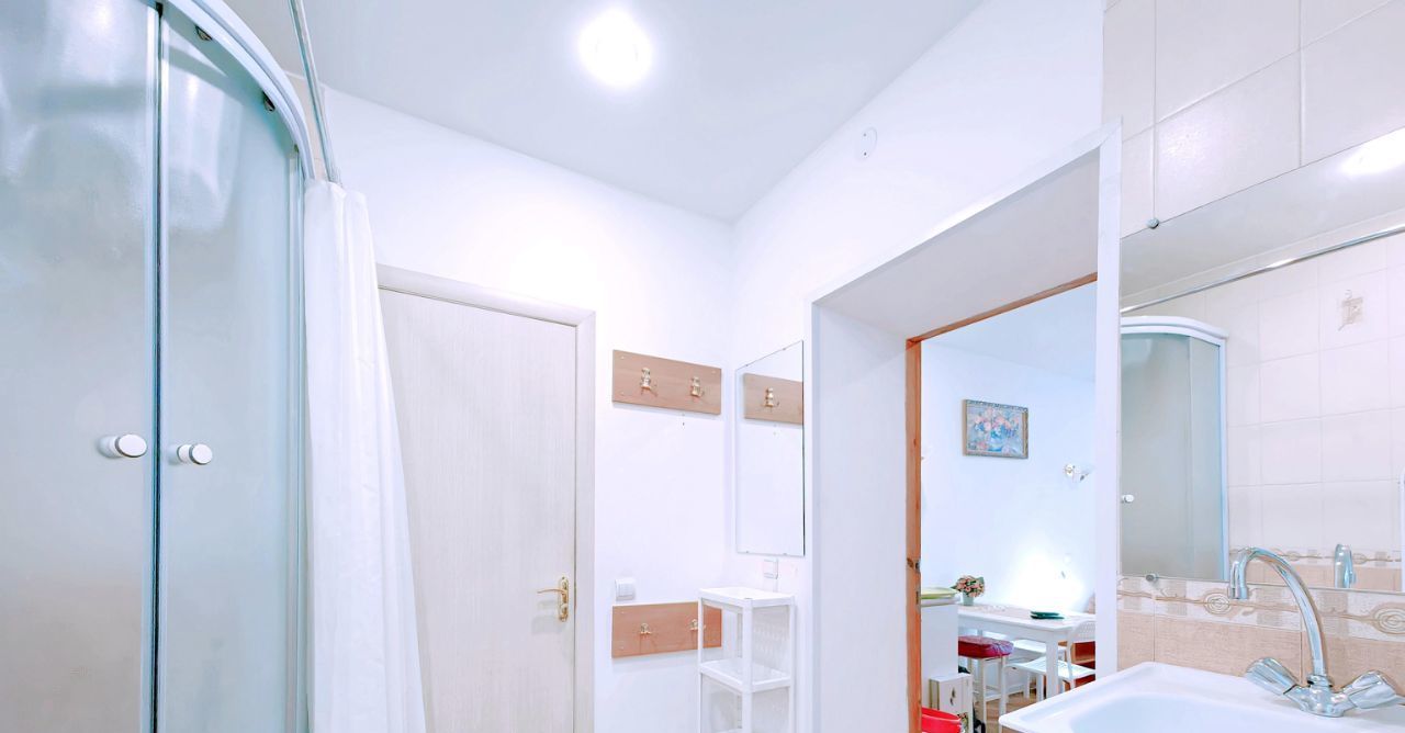 -Санузел: Душ, туалет, стиральная машина, фен, утюг.