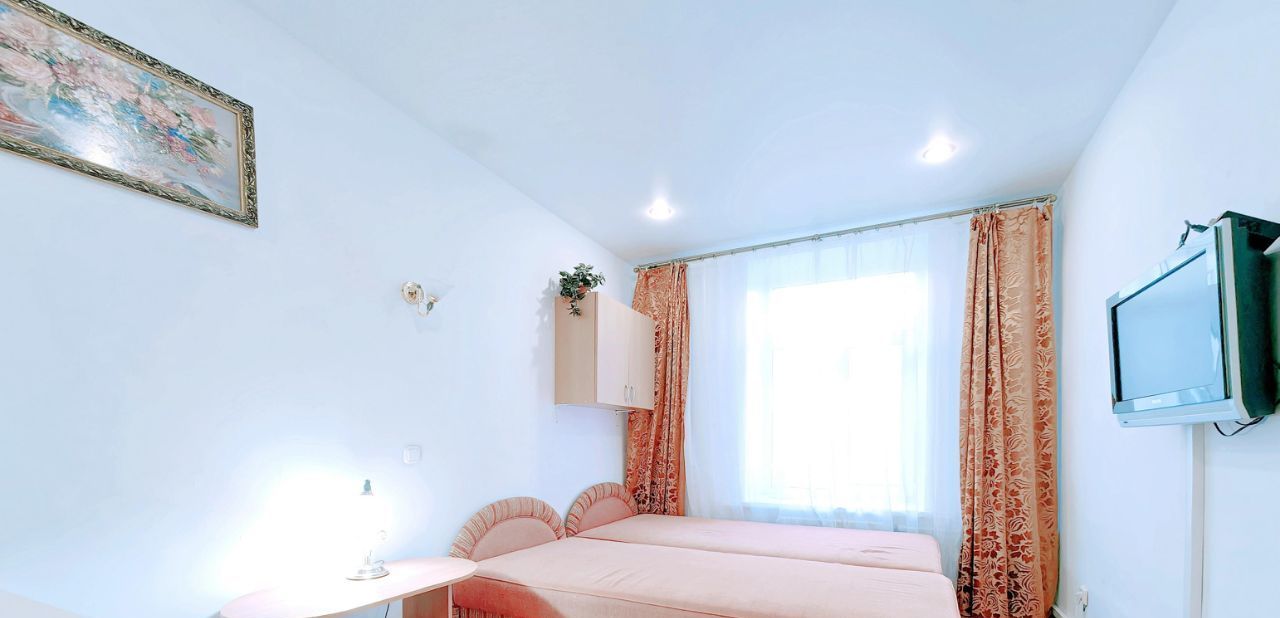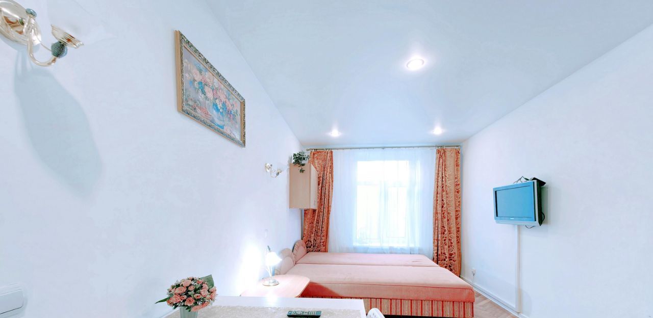-Общая площадь 26 м. 2-х спальная кровать, шкаф, стол, стулья, тумбочка, TV.