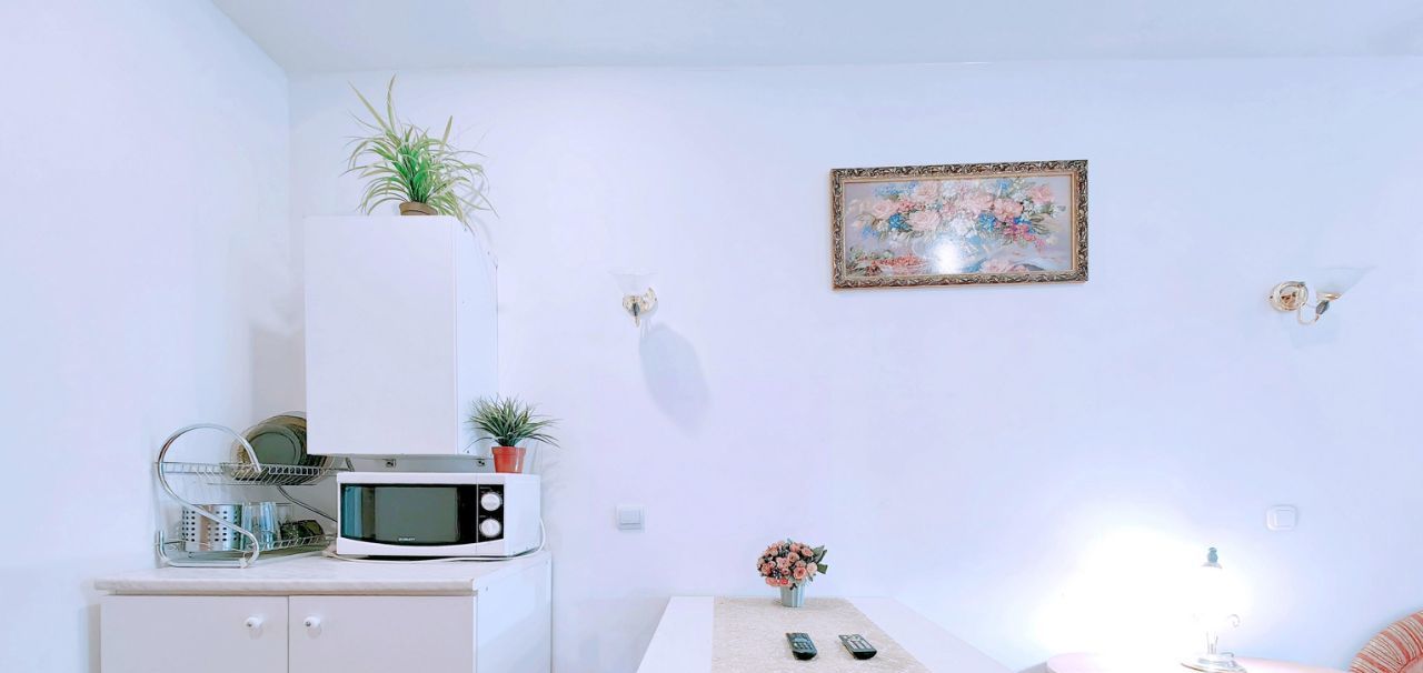 -Кухня: эл.плитка, чайник, большой холодильник, мультиварка, микроволновка, раковина, посуда.