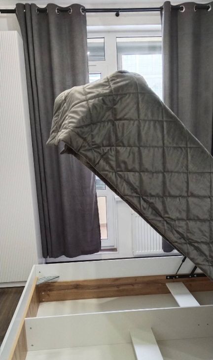 В квартире никто не жил. Новый ремонт, новая мебель, кухонный гарнитур с варочной поверхностью и духовым шкафом, посудомоечная машина. Есть холодильник, стиральная машина, два платяных шкафа (в коридоре и комнате ), большое зеркало, стол и стулья, тумба . Кровать (размер 160 на 200) с ортопедическим матрасом и подъемным механизмом. Большой балкон с уютным местом для отдыха.