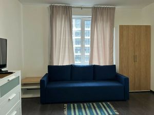 Сдам просторную студию одному человеку или семейной паре без детей и животных. Есть вся необходимая техника, посуда, рабочий стол. Много мест для хранения: большой шкаф в комнате + большой шкаф в ванной и при входе (на фото нет).
