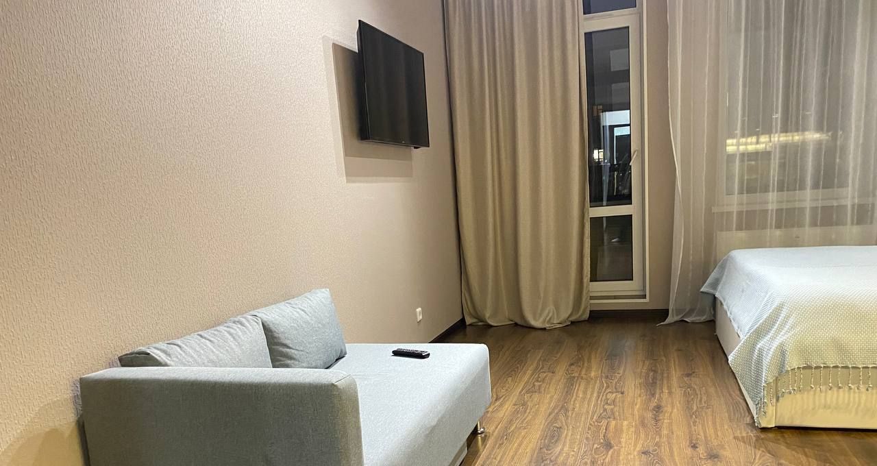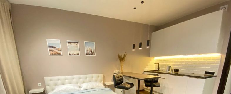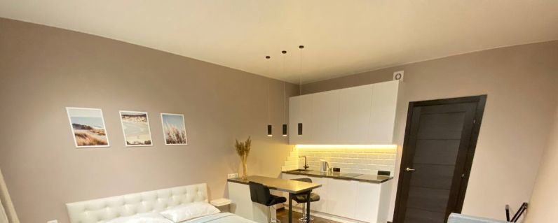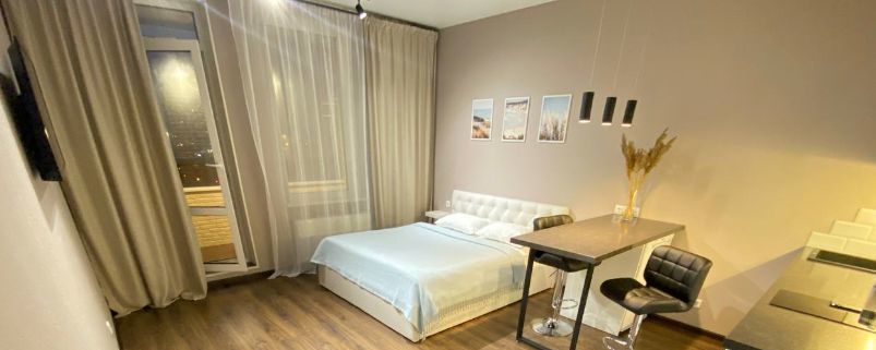 В квартире сделан евроремонт, поэтому все выглядит стильно и современно. Просторная студия полностью меблирована: на кухне и в комнате есть все необходимое для комфортного проживания. В наличии вся необходимая техника: холодильник, телевизор, стиральная машина. Ванная комната оборудована душевой кабиной. Также в квартире есть лоджия, где можно наслаждаться свежим воздухом.