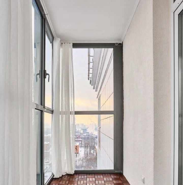 Изюминка квартиры — большой панорамный балкон. С него открывается вид на Неву и город. Идеальное место для встречи рассвета за утренним кофе или вечерних посиделок.