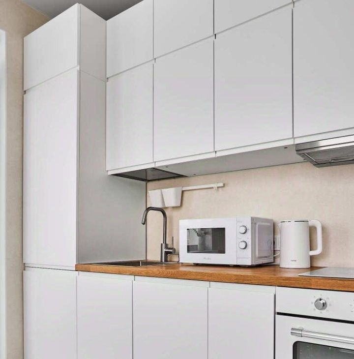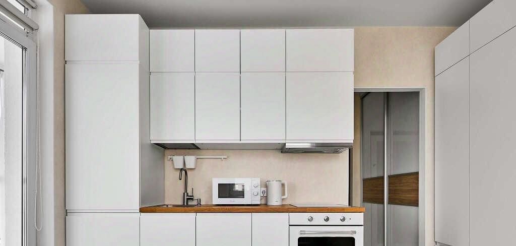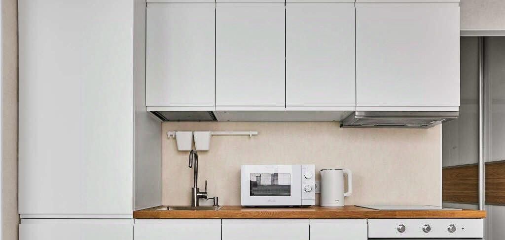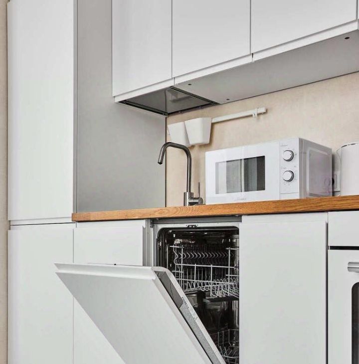 Квартира небольшая, но продумана до мелочей: здесь хватило места и для двух вместительных шкафов, и для полноценной кухни с посудомойкой и духовкой. Полностью готова к проживанию — новый ремонт и мебель.