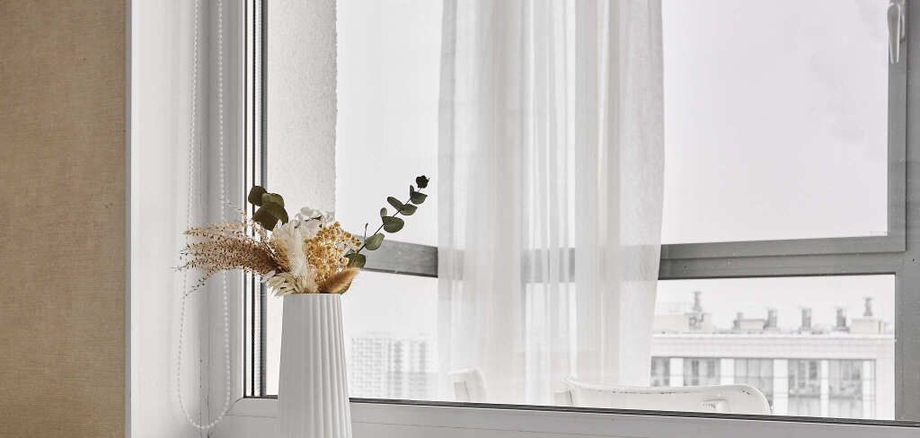 На окнах — рулонные шторы для крепкого сна.