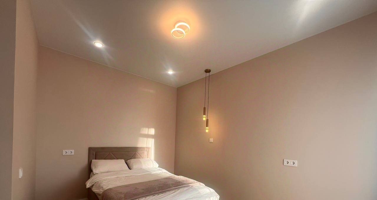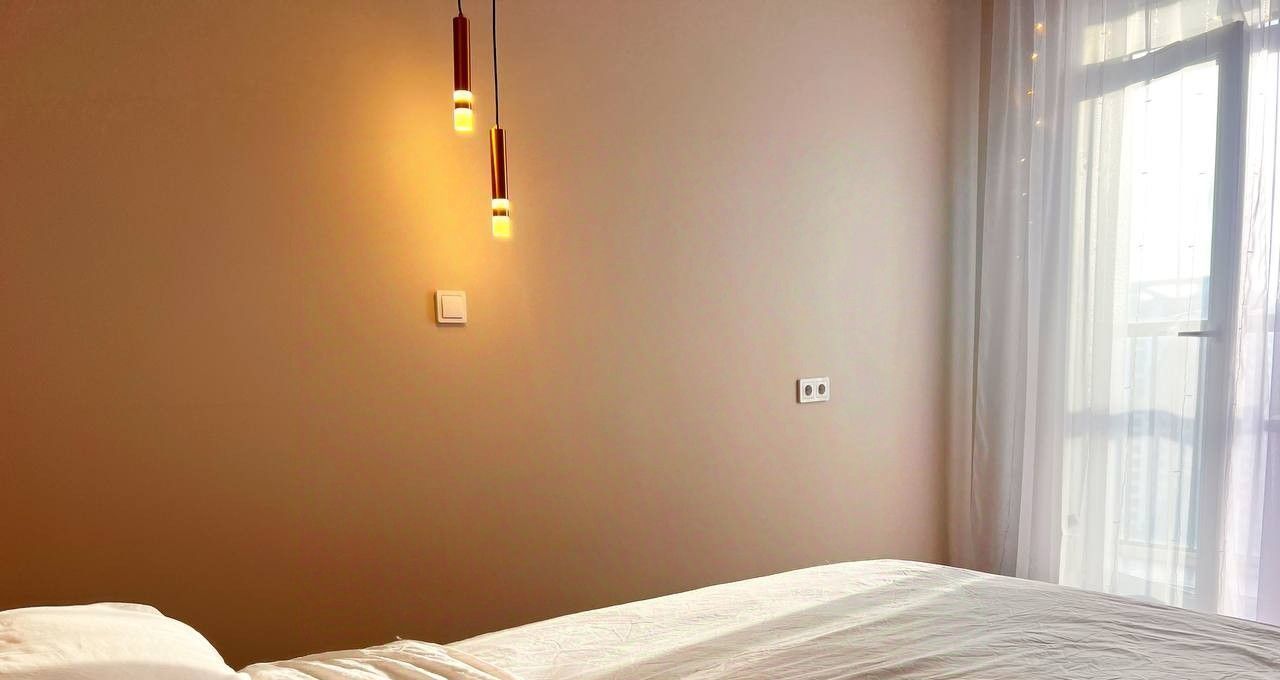 В спальне можно переключать свет на холодный или теплые тона, так же над кроватью есть светильник и две розетки. Везде установлены фильтры для очистки воды.