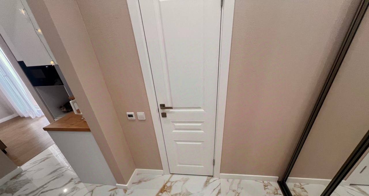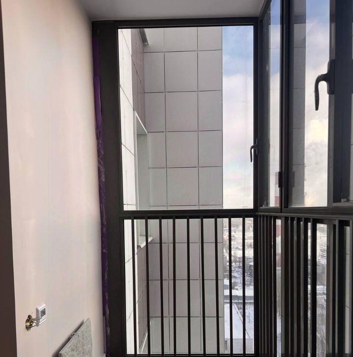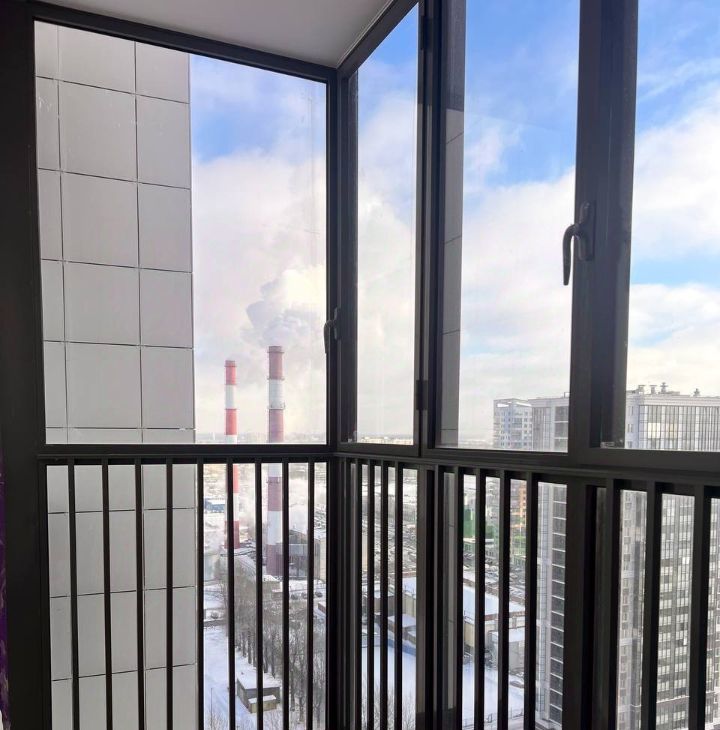 Вид из балкона выходит на тихий двор. В входной двери установлен смарт-ключ, вместо глазка на двери есть камера.
