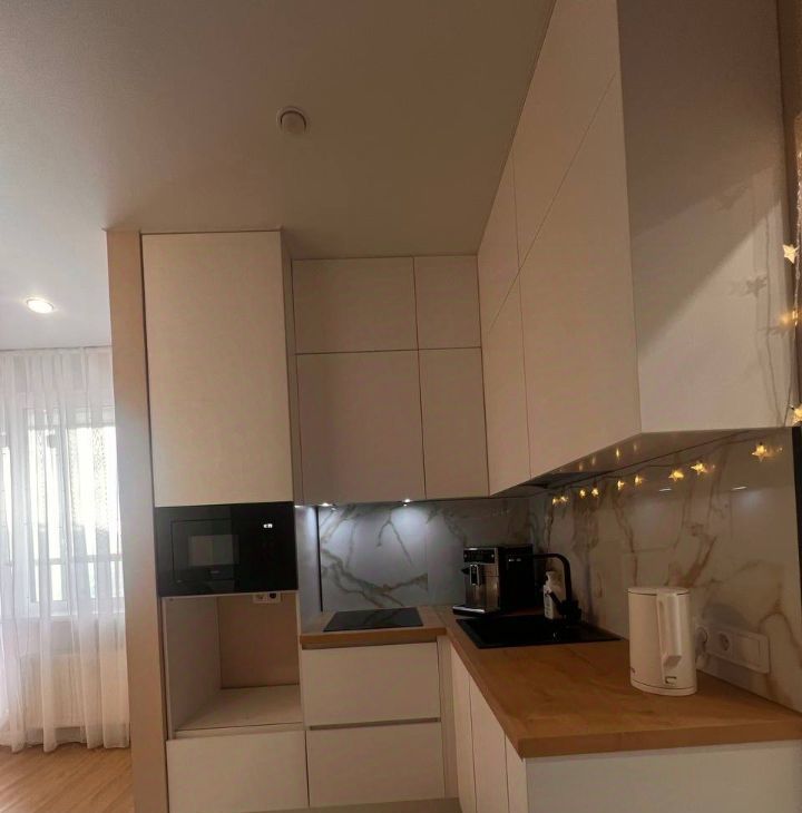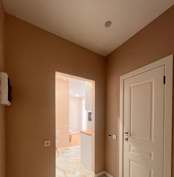 Уютная и тихая квартира-студия с дизайнерским ремонтом в монолитно-кирпичном доме 2019 года постройки. Квартира оборудована всей необходимой техникой и мебелью, включая теплый пол на балконе, в коридоре и ванной. В коридоре установлен большой и вместительный шкаф.