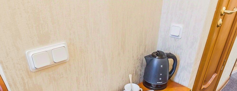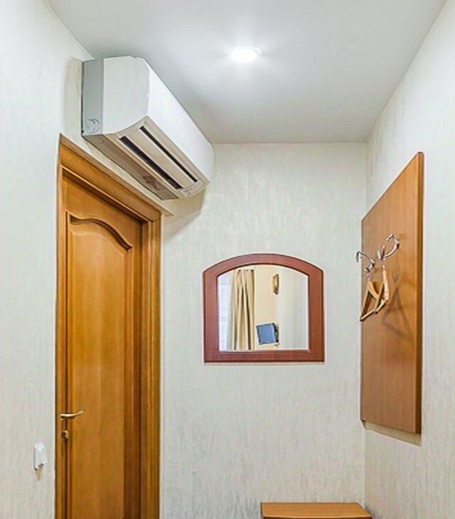 Техника: кондиционер, телевизор, холодильник, чайник, Wi-Fi, большой шкаф для одежды, стол для работы с документами или ноутбуком.