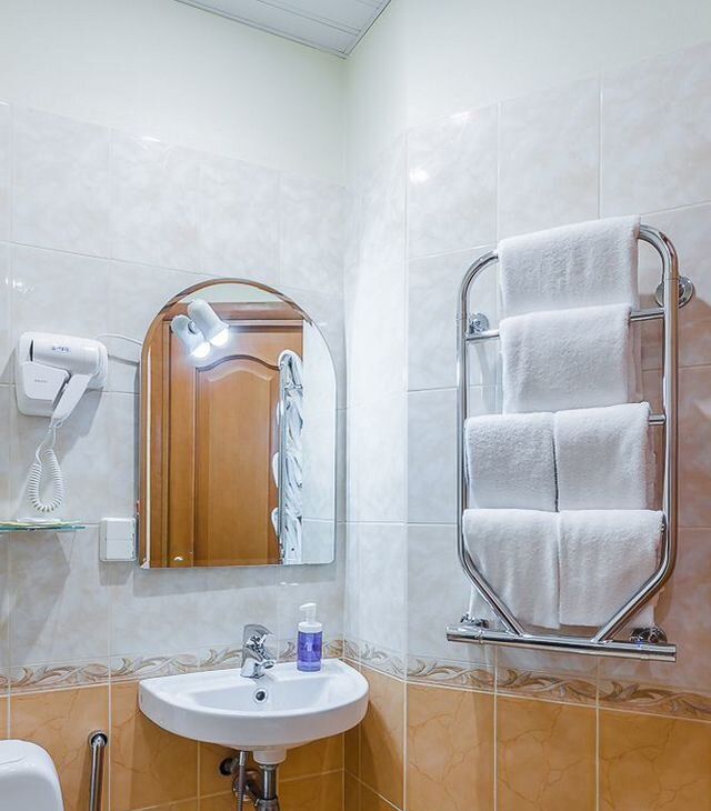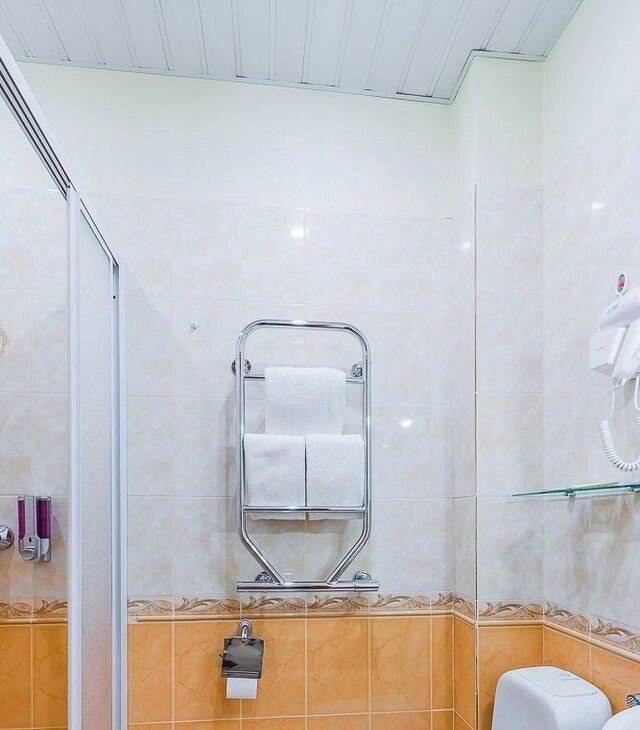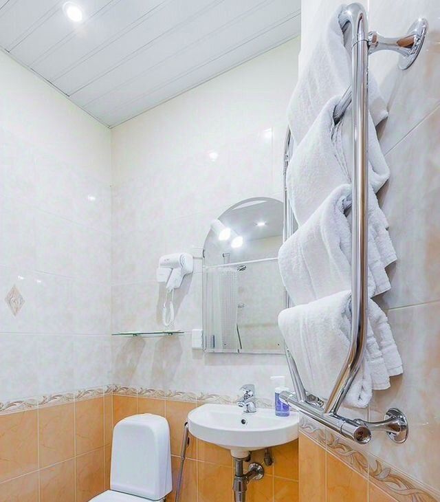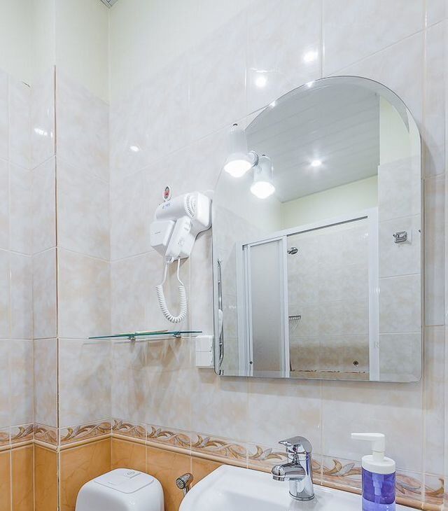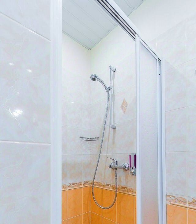 Санузел персональный и находится в самой студии (Только Ваш ), оборудован душевой кабиной, туалетом, умывальником, феном, есть тёплый пол, а так же выдаём полотенца и свежее бельё.
