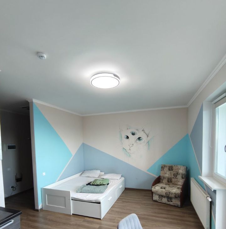 В квартире есть всё для жизни: двухместная кровать икея, холодильник, микроволновка, телевизор, Wi-Fi, плита, посуда для готовки, стиральная машина, пылесос, люстра с пультом управления, Кресло-диван (при желании могу его увезти).