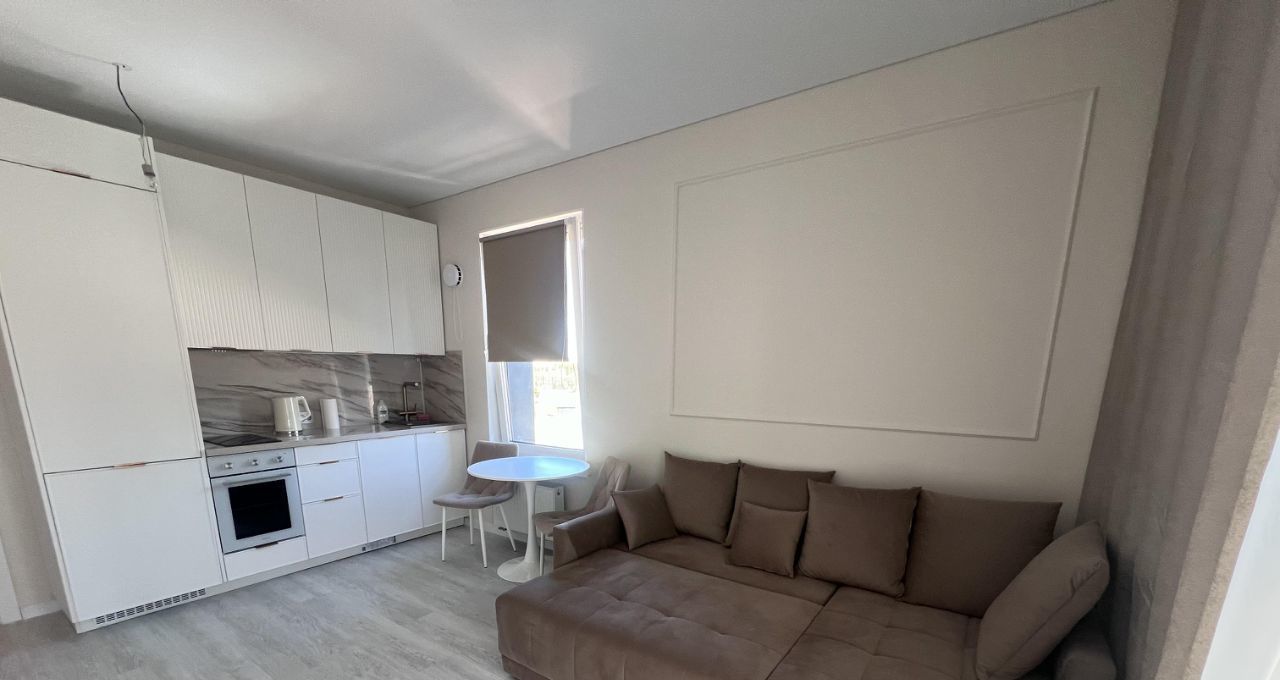 Сдается квартира в новом доме, Приморского района. Студия 27 метров, жилая 18 метров, балкон застекленный - панорамный.