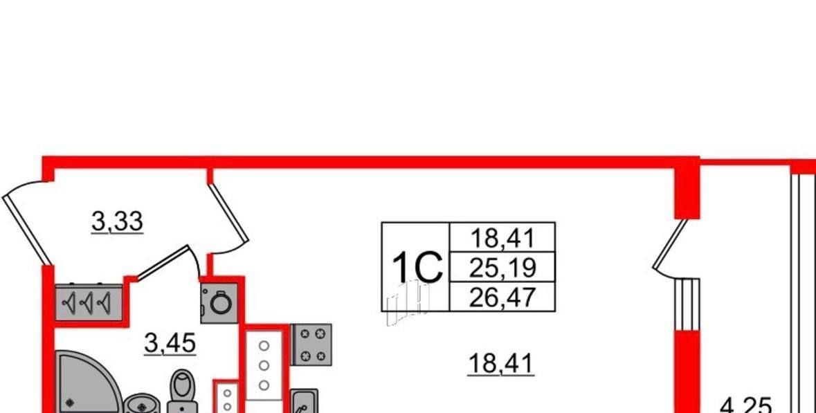 Студия Санкт-Петербург Парашютная ул., 77к1 (25.0 м²)