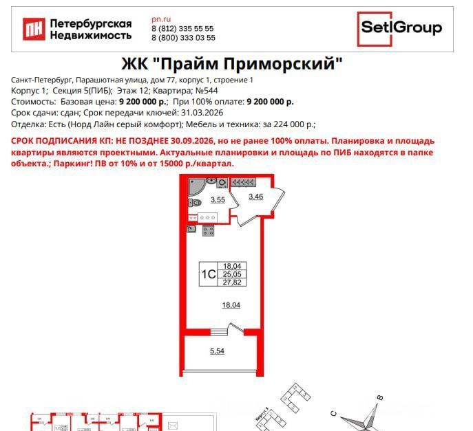Студия Санкт-Петербург Парашютная ул., 77к1 (27.82 м²)