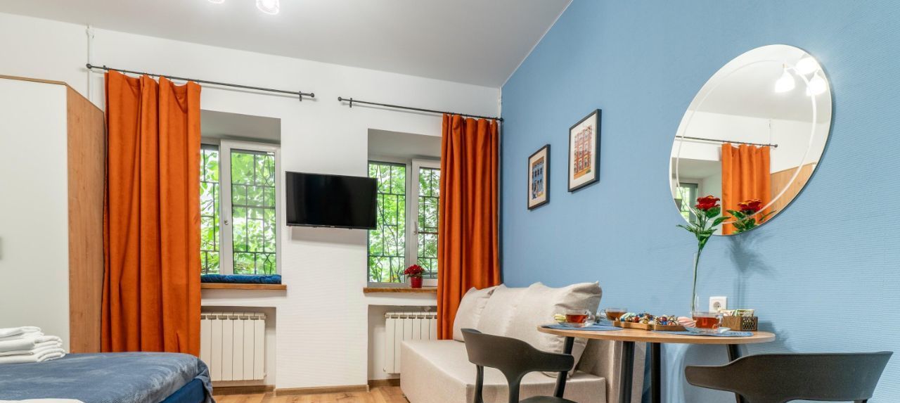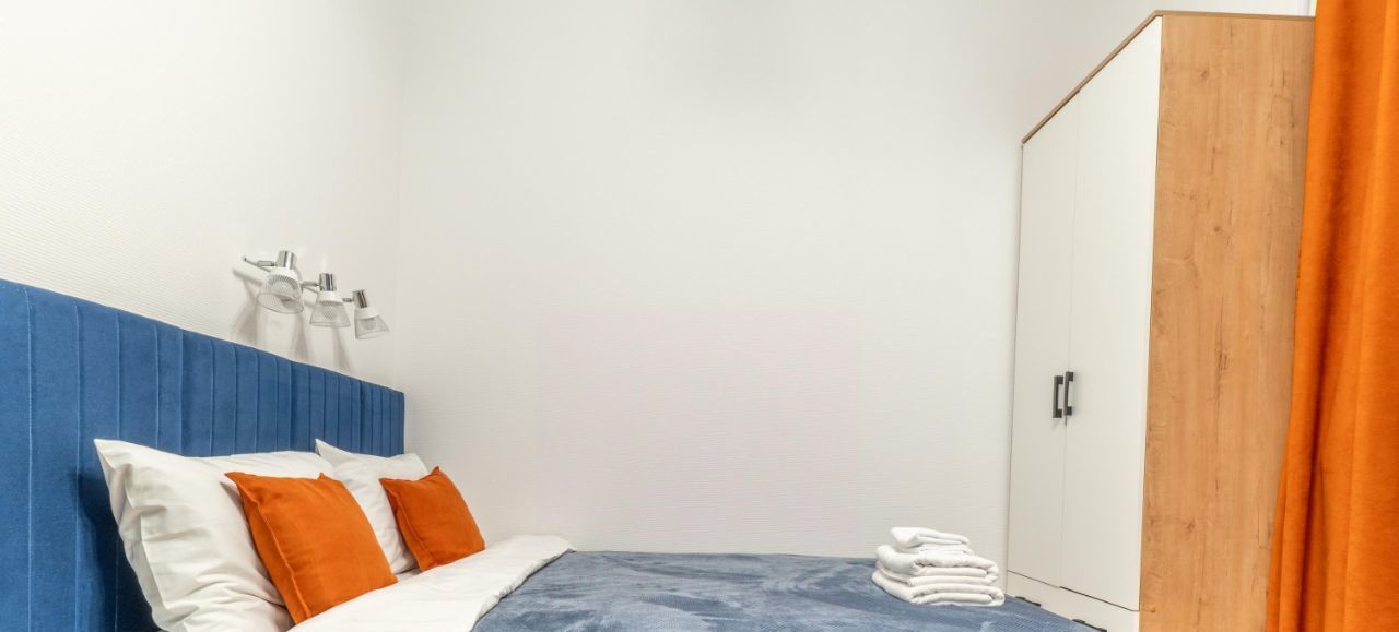 Квартира расположена на 1-м этаже, окна выходят в тихий закрытый двор — шум мегаполиса не потревожит ваш сон. Ортопедические матрасы и шторы блэкаут не оставят бессоннице никаких шансов.