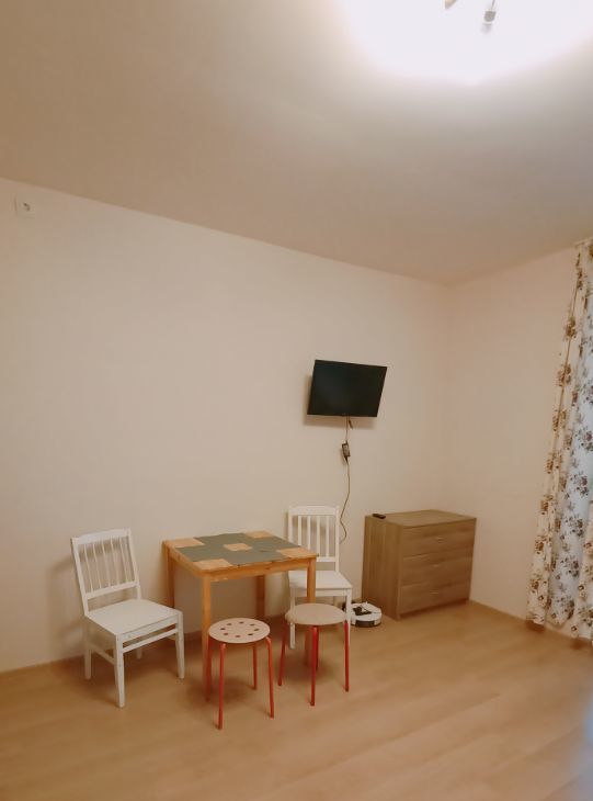 Сдается в аренду уютная квартира - студия с ремонтом, мебелью и бытовой техникой на длительный срок в тихом зелёном районе. Транспортная доступность: до метро Автово 15 мин.