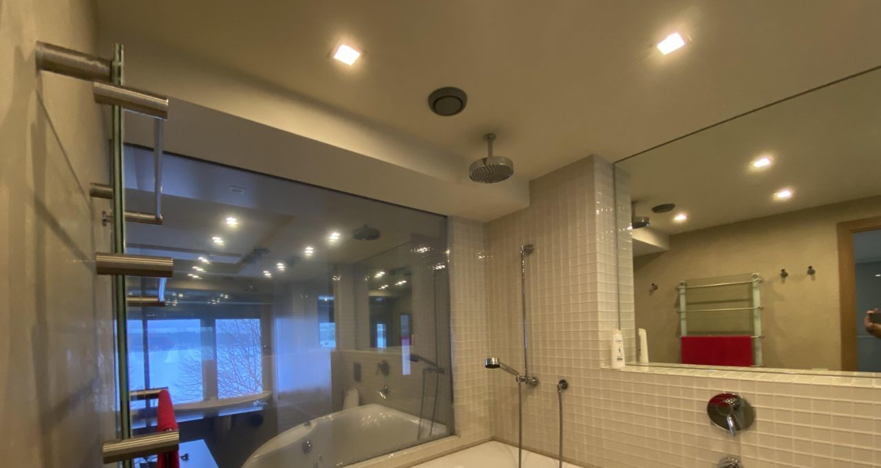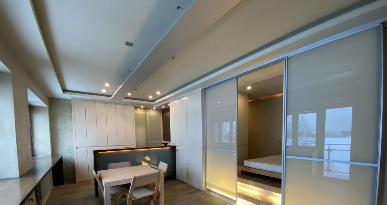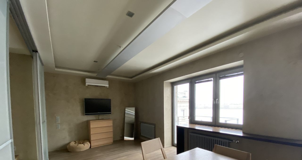 - Просторная, светлая квартира-студия, переделанная из двухкомнатной квартиры. Два сан. узла, джакузи, из окна одного из них открывается вид на Неву. В квартире проделан авторский дизайн с применением дорогих натуральных материалов и сантехники, быт. техника "Miele", спальная зона на подиуме, при желании закрывается дверьми-купе. Окна оборудованы жалюзи. В ванной подогрев полов.
