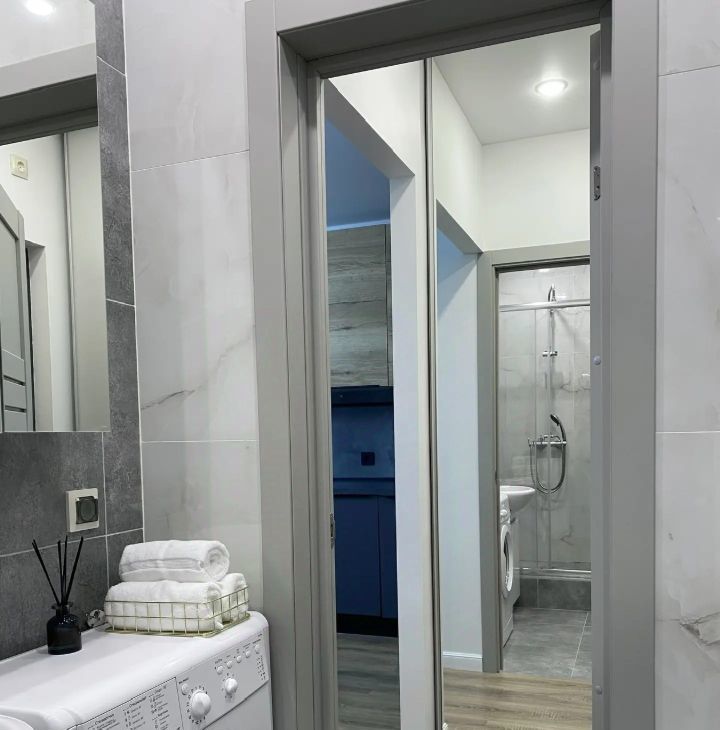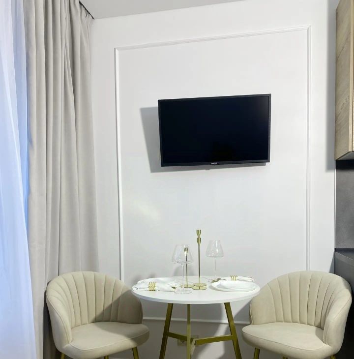 Кухонный гарнитур с европейской встроенной техникой, Smart-TV, высокоскоростной интернет, тёплые полы в санузле, эффективная шумоизоляция.